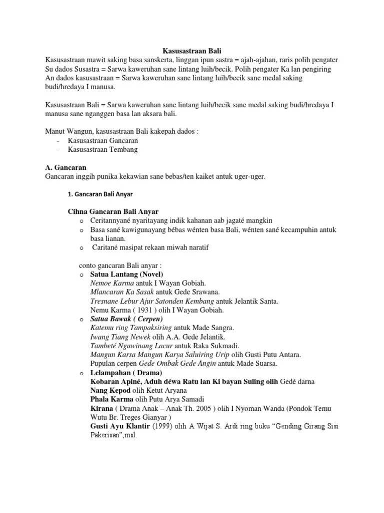 Sapunapi utsaha sang prabhu mangda prasida molihang ni diah tantri? Kasusastran bali anyar kasusastran bali anyar taler wenten sane mawangun gancaran, wenten taler sane mawangun puisi. Puisi bali anyar, kakawitin antuk. Kamedalangnyane pupulan puisi penjor puniki, silih tunggil merupa pid abdab ngalimbakang pangriptan sastra bali anyar (modern). Puisi bali anyar punika wantah sastra sane kaangge nartaang pabesen, ngangge basa sane bawak nanging dagingne padet. Niki wantah silih sinunggil puisi kakawiannyane sane mamurda "patapan i kedis" sane kamuat ring cakepan pupulan puisi bali anyar dane sane . Soroh kasusastraan bali anyar luire puisi, cerpen, novel, miwah drama. Bebas ten wenten uger uger.